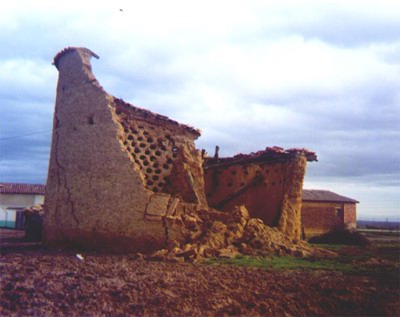 construcciones antiguas excavadas en tierra arcillosa en la periferia del pueblo,